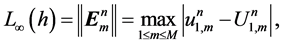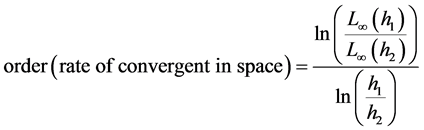 To calculate the convergent rate in space, we take the time step k sufficiently small and the error from temporal truncation is relatively small