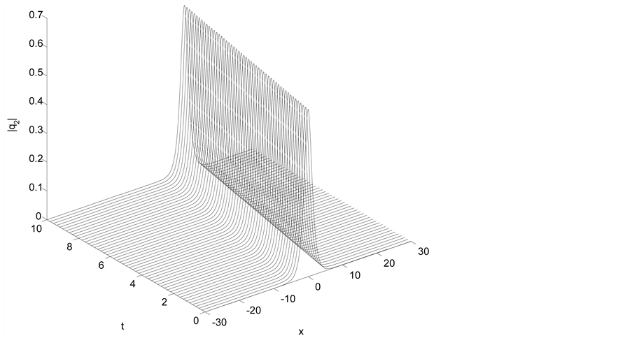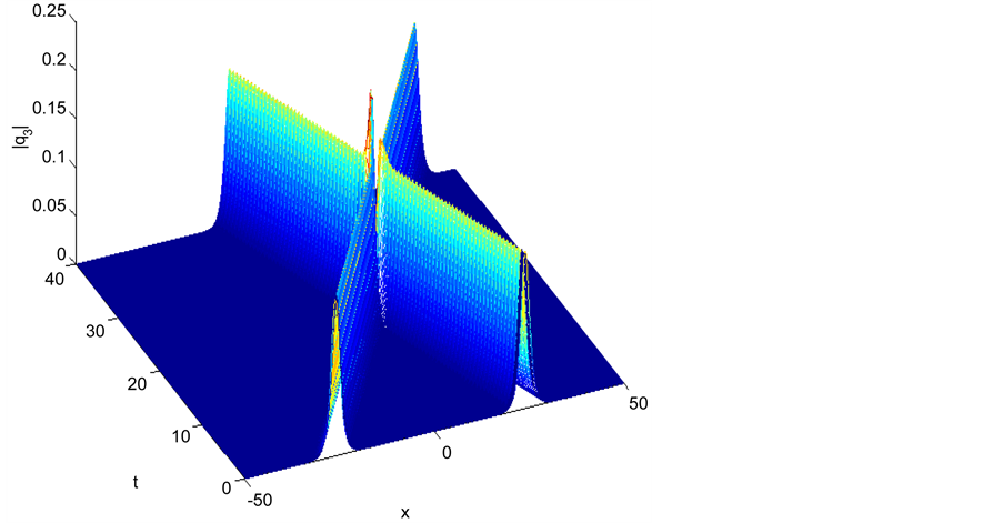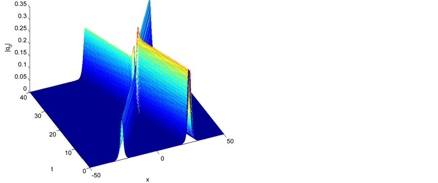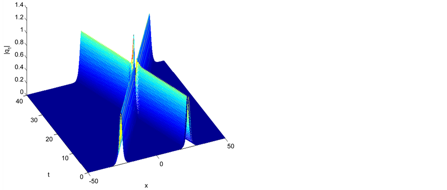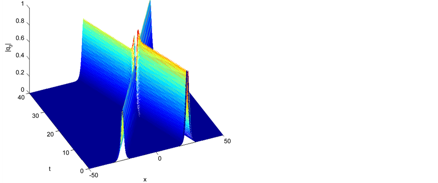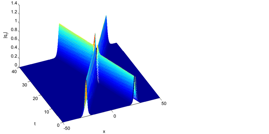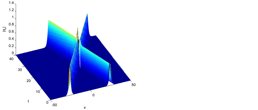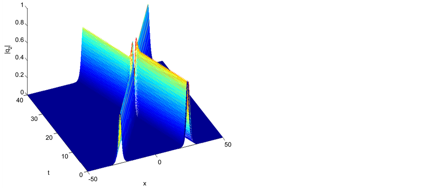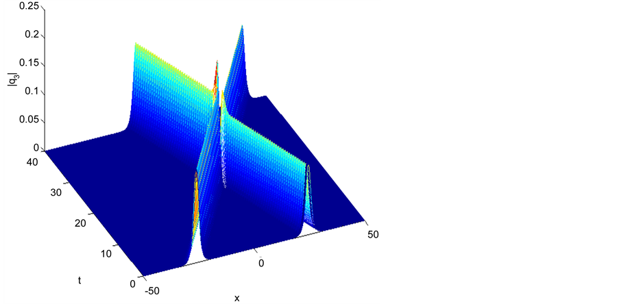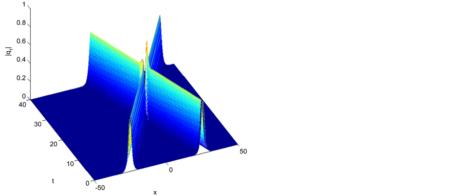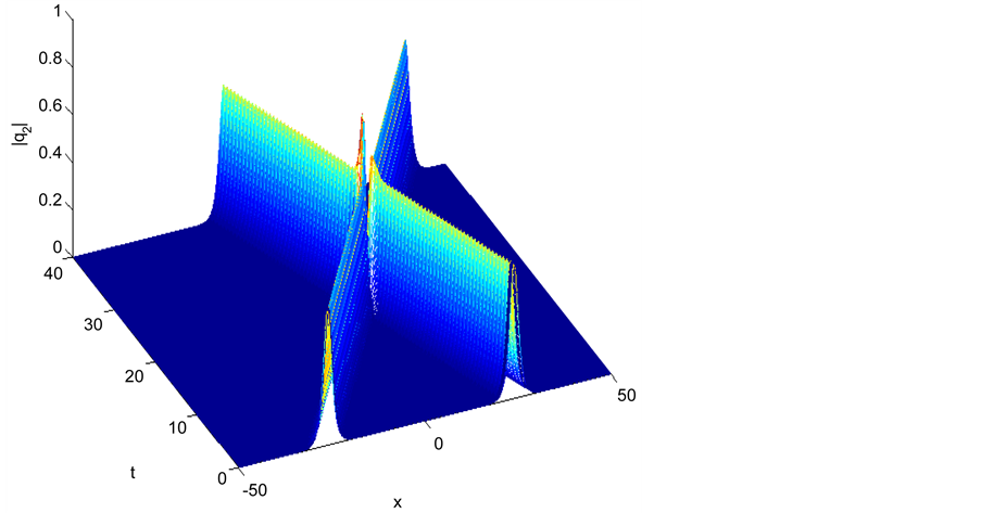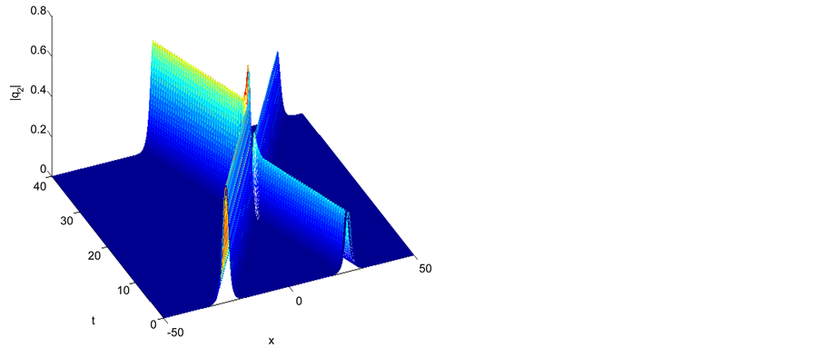 For the first set of parameters (36), we have noticed that the amplitudes of soliton 1 and soliton 2 before the interaction are
