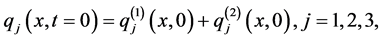 To study the interaction of two solitons with different parameters, we choose the initial condition as a sum of two single solitons of the form