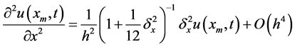 A highly accurate finite difference scheme can be obtained by using the fourth order Padè compact difference approximation for the spatial discretization