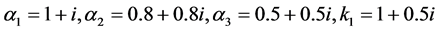 Figure 13. Inelastic interaction with pure real di¤erent parameters q1.