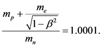 The sum of masses of proton and relativistic electron is consistent with measured mass of neutron: