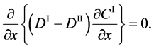 Since the shape variation of diffusion couple is negligible in the usual experimentation, the total particle numbers of I and II on an arbitrary cross section in the diffusion region are considered to be constant with a good approximation. In the typical interdiffusion problems, the relation of