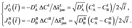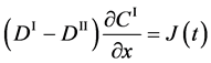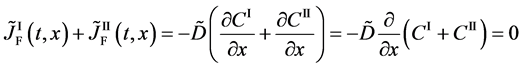 Here, note that the diffusion fluxes of (8), (22) and (24) are valid only in the partial differential equations (7), (12) and (23), respectively. When (8), (22) and (24) are applied to the elements I and II, the relation among diffusion fluxes of