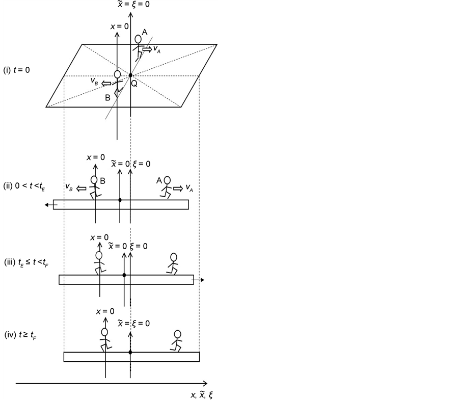 As is known from the unified theory of diffusion problems, the basic concept of diffusion phenomena is in the interdiffusion problems [4] . In the following discussion, the above raft model is reasonably applied to a typical binary system interdiffusion problem in accordance with the mathematical physics. In that case, the person A, the person B, the raft and water in the pond correspond to the mass center of diffusion particles, the mass center of solvent particles (diffusion field), the diffusion region space, and space of the diffusion region outside, respectively. Here, note that the diffusion region space and the space of diffusion region outside have no mass, whereas the raft and water in the pond have the mass