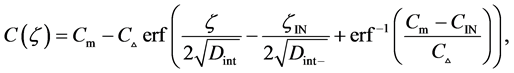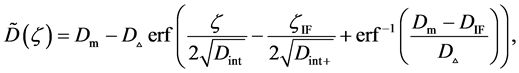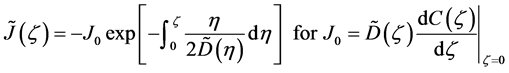 Substituting the initial and/or boundary values into the general solutions of the diffusion equation (13) i.e., (16) and (17), the physical solutions of the diffusion equation (3) were reasonably obtained as (18) and (19). As can be seen from figure 3 and figure 4 in [11] , the present solutions agree with the results of the Boltzmann Matano method. Further, it is clarified that the physical solutions of (18) and (19) are equivalent to those of (12) because of