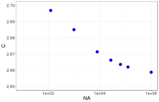 This is expression (8) is exact, noted by subscript “ex”, and it gives the specific heat per atom for a nanocrystal with a simple cubic structure and nL atoms per side. The first question that arises is how this parameter changes according to the size of the system. And the answer is that it changes very slowly, as seen in Figure 2.