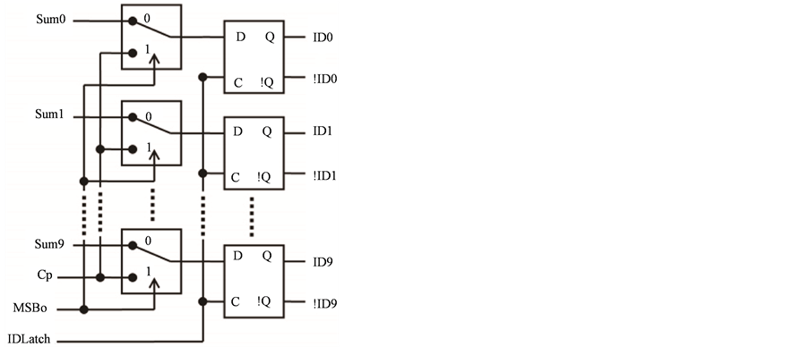 Intermediate latch (Figure 4) drives the DAC during the conversion. In addition, it retains its result after each conversion for range calculator and provides this result as the starting point of moving binary search tree in subsequent conversion. The multiplexers serve to limit the range of moving binary search tree to avoid the search tree from going beyond upper or below lower limits of the ADC full scale range. During each conversion process, the output latch (Figure 5) first provides the preceding result for range calculator and then latches the current result from intermediate latch.