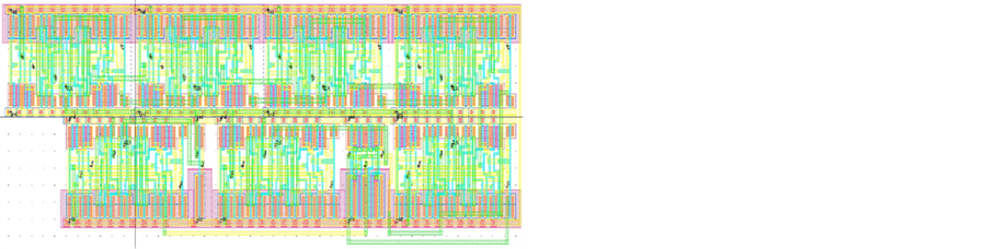 A general linear search method takes a longer time to converge than a BST because the big O notation is of the order of n, which is the worst of all the search algorithms. But why don’t we use the advantage of linear search? When the difference between two consecutive signals is very close, then linear search seems to be a good method to resort to. To implement the moving binary search tree which uses previous result as starting point for conversion, the proposed search tree requires to move “up or down” at any level of the tree. Therefore, a summer (block diagram in Figure 7 and layout in Figure 8) which performs both addition and subtraction is needed. During the successive approximation process, the summer performs addition at the selected bit if the comparator result is logical “1” (i.e. sampled analog input > DAC input) or subtraction at the selected bit if the comparator result is logical “0” (i.e. sampled analog input < DAC input). So now why don’t we combine both, i.e. the advantages of binary and linear search methods? The following example illustrates the mechanism of the circuits. For instance, the two consecutive signals are: