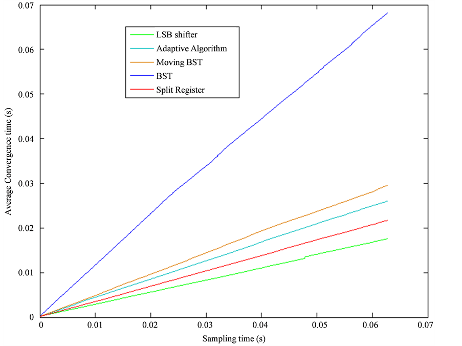This happens because the consecutive signals are so close to each other that the difference between them is less than the number of bits. Hence the linear search is chosen and the value converges in 2 iterations. Figure 2 depicts clearly that for the value to move from m -> q, BST takes 6 iterations i.e. m -> k -> g -> p -> w -> s -> q. But linear search can finish it in 2 iterations, i.e. m -> p -> q. Hence we use a range calculating circuit that finds the difference between current and previous signal, if the difference is less than n-1 [n-number of bits] then linear search will be used, otherwise binary search is used. Since this algorithm has two search algorithms that are used based on the speed at which the input signal changes, it is called as adaptive algorithm.