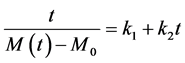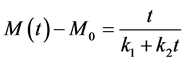 ) was developed by Carslaw and Jaeger in 1959 [14] . By admitting that the effective coefficient of diffusion depends neither on the concentration, nor on the position, the ratio of the instantaneous rate of absorption obeys the Equation (6).