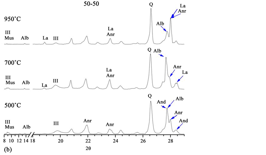However, the most suitable proportion of “clayey” and “sandy” materials depends, to a large extent, on the nature of the available materials. In addition, we must consider that the requirements for environmental preservation are continuously increasing [2] . Therefore, the optimization of the ratio of “clayey” material to “sandy” material represents an effective and important means of mitigating the environmental impact [5] . At the Andes mountain range, “sandy” material is found in surface deposits that usually have good amount of andesite. Actually, andesite most commonly denotes fine-grained and typically consist essentially of andesine (a plagioclase feldspar). Crystal of andesine lies in a finer groundmass, usually crystalline, but sometime glassy. Andesine consists of 70% to 50% albite and 30% to 50% anorthite. Andesine can decompose into anorthite and albite, as occurs in the regional model of thermal metamorphism [6] [7] . However, studies of the formation of anorthite and their effects on the increase in strength during sintering of clay based material are rare in the literature [8] .