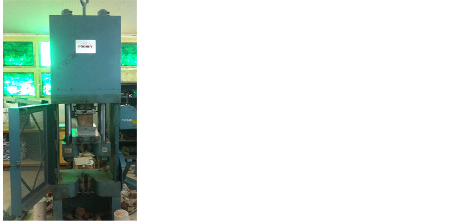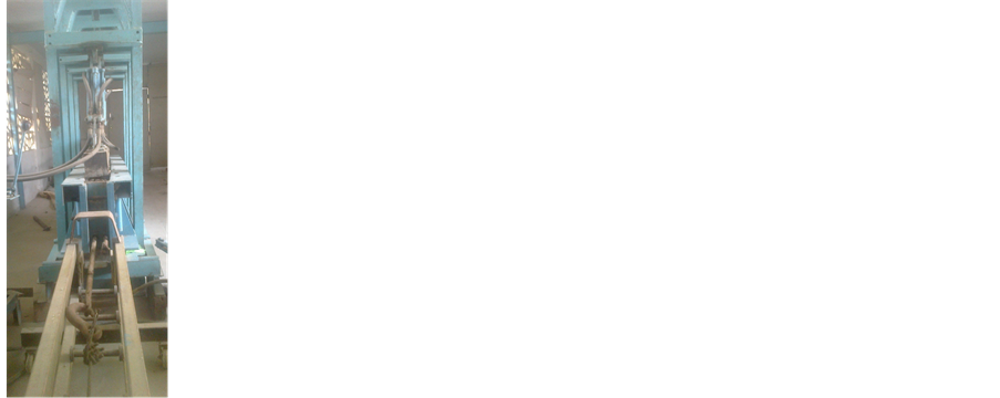 Clay and pit sand were quarried locally and were mixed in a ratio of 70:30 by weight. Hereafter, this mixture will be referred to as clay. Twenty-two percentage of potable water was mixed with the mixture in order to form a workable paste. Mixing was carried out in a pan mixer for fifteen minutes. Beams of size 150 mm × 300 mm × 1980 mm were cast in layers using this moist clay mixture. During casting, the beams were compacted at a pressure of 6 MPa in a Mechanized System [12] , as shown in Figure 1. Two steel bars of 25 mm diameter were placed in tension zone of the beams during casting to create perforations for inserting tensile reinforcement after baking. The clay beams were dried in shade and then fired in a commercial Hoffman kiln at a temperature of 1000˚C. Baked clay beams are shown in Figure 2.