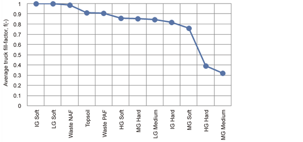 or overfilled similar to trucks with fill factors from 0.4 to 1.2 in practice [31] , which in turn affects loading cyce time and lowers the tons per day presented in Figure 3.
