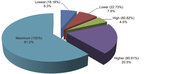the tonnage carried. Given the tonnage loaded at five fixed values (6, 7.5, 27, 30 and 33 t), the values of fill-factor established were also fixed at 18.18%, 22.73%, 81.8%, 90.91% and 100%, respectively. Figure 4 shows the frequency distribution of fill factor levels for dispatch data recorded in one month. In general, higher fill-factors of 100% and 90.91% were observed at higher frequencies of 61.2% and 20.5%, respectively, during which Waste NAF and Waste PAF materials were being transported. This indicates a good performance for waste material transportation. Statistical analysis of fill-factors revealed a mean value of