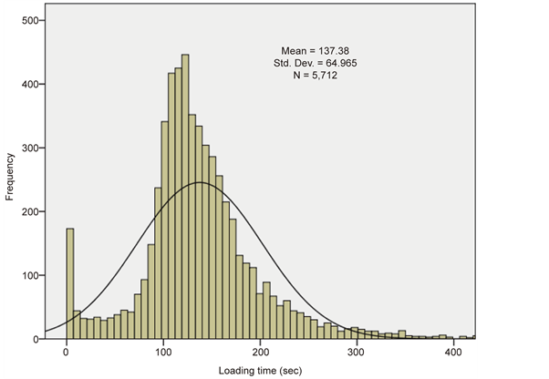 The horizontal axis in Figure 6 shows that loading time spans beyond 400 seconds in all cases, indicating that excavators do not take exactly the same time to load the same trucks even when loading the same quantity of waste materials. The stochastic nature of the loading process is affected by type and particle size distribution of material, which change from time to time even in the same location, while factors like excavator and truck pan design are constant. Higher values of Lt can result from larger particle size of loaded material which in turn affect bucket fill factor. Since the rocks may range in size from less than 1 mm to larger than 1 m, the loading time will vary accordingly.