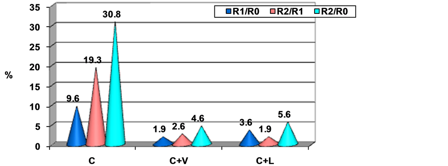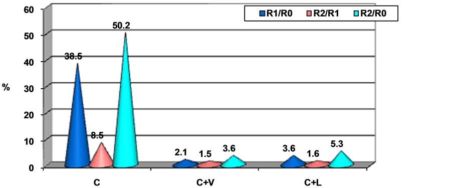 Figure 2. Percentage differences of the average SOD values compared to R0.