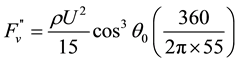 Here a feature of the irrotational solution for flow past a sphere is imported: that the magnitude of the velocity component tangent to the sphere falls off with increasing distance from the origin perpendicular to the sphere, r, as the inverse cube of the distance [5] . Integrating the vertical reaction force using this function for U = U(r) produces
