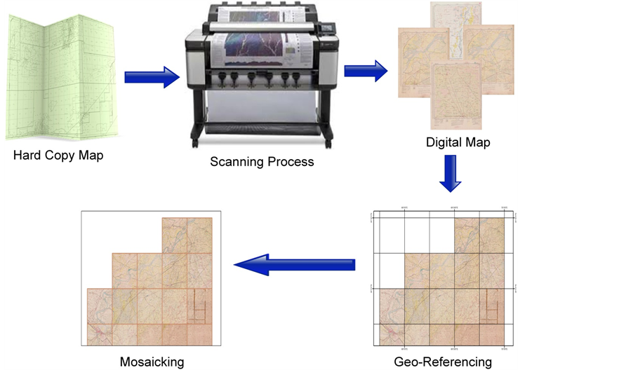 Figure 3. An overview of hard copy map transformation into a geo-referenced map.