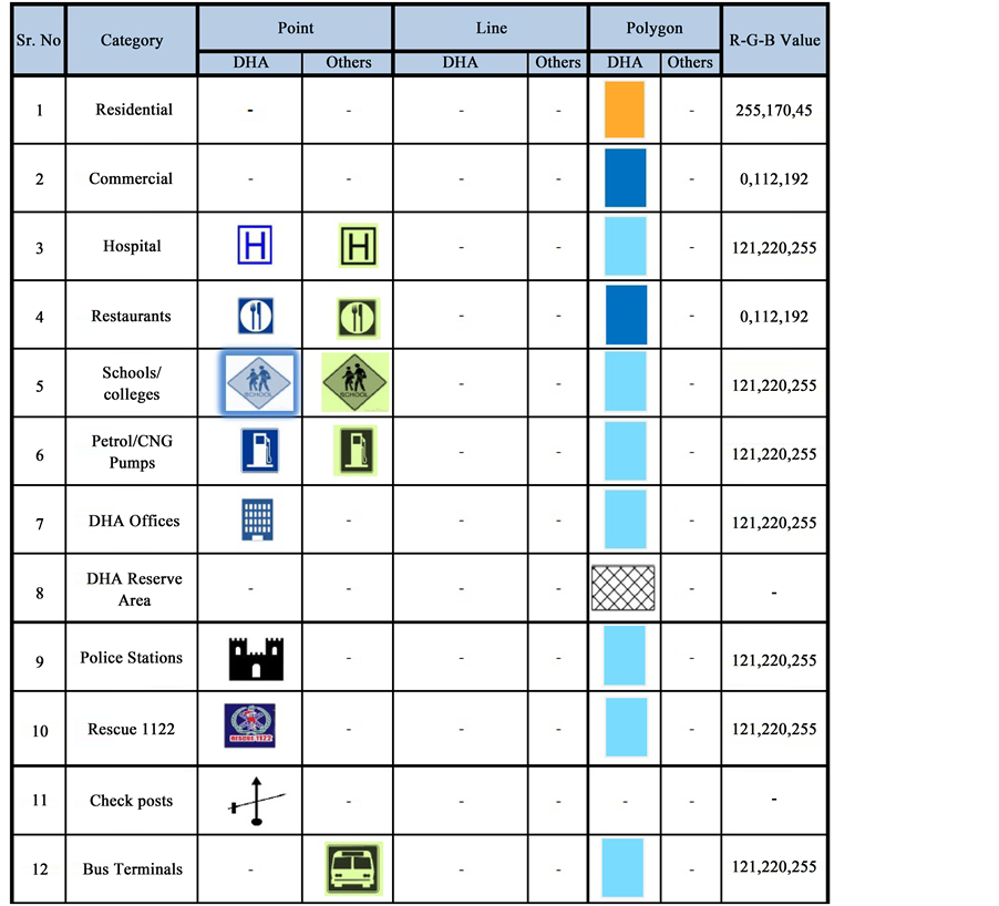 As per international convention spatial symbologies are use. Figure 4 shows the sample spatial symbologies.