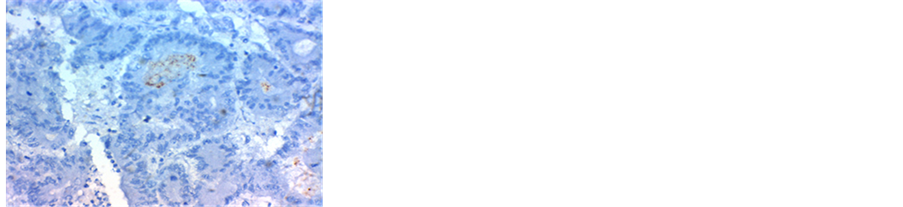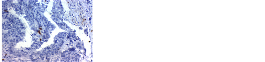 (Figure 3(a)). No significant correlation was found between CD4 expression and age, sex of our patients, histopathological subtype, gross pattern or grade of the carcinoma. The high expressions of CD4 in rectal carcinoma was significantly correlated to cT stage (p = 0.01), high number of lymphocytes (p = 0.05), T helper (p = 0.01) and Tc lymphocytes (p = 0.01) circulating in peripheral blood (Table 5). CD8 expression: high expression of CD8 was detected in 22 patients (55%) (Figure 3(c)) the high expressions of CD8 was significantly correlated with age of the patient (p = 0.01), cT stage (p = 0.01), high peripheral lymphocyte count (p = 0.27), high T cells (p = 0.03), high T cytotoxic lymphocytes circulating in peripheral blood (p = 0.010) (Table 5), but no significant correlation was found between its expression and sex of our patients, histopathological subtype, gross pattern or grade of the carcinoma. Expressions of both (CD 4 & CD8) were significantly positively correlated with each other (p < 0.01). When the numbers were counted in each case, the densities of CD4(+) and CD8(+) T cells showed a strong association more importantly; the density of CD4(+) as well as CD8(+) T cells was highly correlated with tumor response to CRT. All who achieve Cp CR (6 patients) were with high tissue CD4 (p-value 0.07) & CD8 (p-value 0.02) in contrast to those with low CD4 & CD8 densities as no one of them achieved CR. High CD4 & CD8 expressions showed statistically highly significant correlations with high regression rate (p < 0.01) (Table 6).