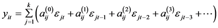 is d dimension exogenous variable column vector, p is lag length, T is the sample number. Matrix