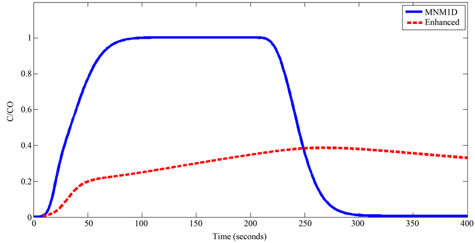 The STANMOD suite builds off analytic models developed from 1980, including CFITM and CXTFIT, which accounts for particle degradation and the equilibrium state at a single reaction site. The numerical HYDRUS model released in 1991 includes temperature dependent kinetic coefficients and allows for two reac- tion sites [7] . One of the models MNM1D [8] , which is introduced in the last few years, introduces non-linear reaction sites and kinetic coefficients dependent upon salt concentrations. It is based on the following major components of the system: the diffusion of the nanoparticles in the fluid and the transport of them between the liquid and solid phases through reaction sites. Other features of the model include variable hydrochemical parameters that depend on the diffusion of salts and reaction sites of both the linear and Langmuirian type. This model was tested by Tosco and Sethi against both the STANMOD and HYDRUS-1D models, and the MNM1D closely matched these.