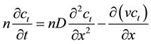 Several 1D forms of the model have been proposed, each taking into account some or all of the above characteristics. However, we can write the general form of the modified advection-dispersion equation for the colloid movement taking into account the liquid-solid phase transfer: