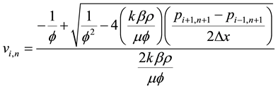Finally, we now introduce a fluid model to describe the flow velocity of the groundwater over time and space. Here, we will implement the Darcy-Forchheimer model [10] , which has specific applications to groundwater flow. The model is governed by the following differential equations: