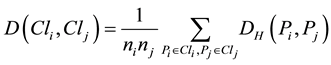 In this study, we used the group average method as opposed to the clustering method. The distance between the clusters can be determined by the following function: