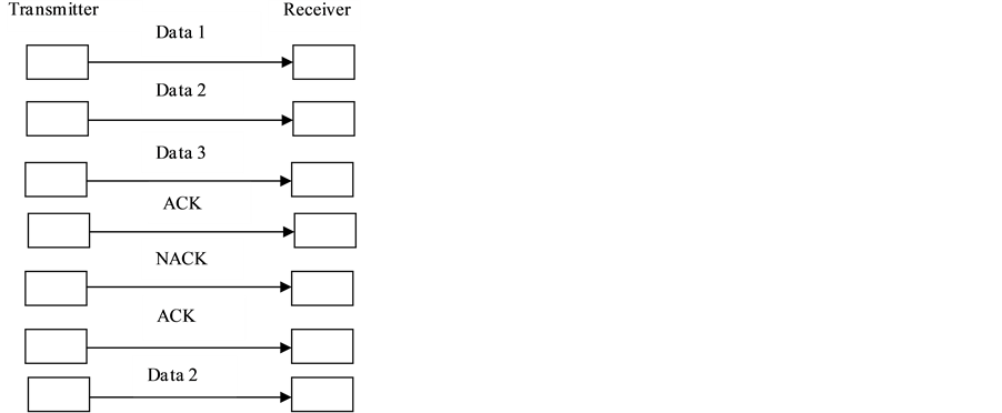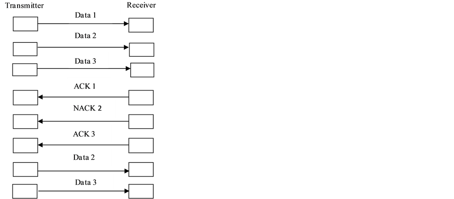 The Go-Back-N ARQ Scheme is illustrated in Figure 4. Considering data of the user to be transmittedto the corresponding destination is subdivided into 3 parts.