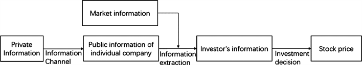 This chapter summarizes the micro-path of “information-stock price” under the effective market hypothesis in Figure 1. Firstly, the company’s private information is disclosed through various information channels in accordance with the requirements of securities laws and regulations. Then, the company’s public information, mixing with other market information form the total set of public information in the market. Investors obtain this public information to form their own information sets, and then make investment decisions through their own risk preference models. The stock price information is the combination of all investors’ investment decisions.