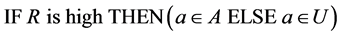 As discussed in fuzzy data conversion, the fuzzy sets A and U are formed and they are utilized for decision making by using the fuzzy if then rule which is depicted in Equation (14) as follows: