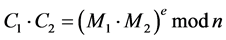 The product of two cipher text decrypts to the product of their corresponding plaintext. RSA, ELGamal are the Multiplicative Encryption Schemes. (e, n) are public keys.