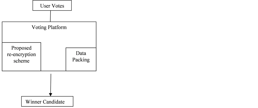 The Flow Chart (Figure 1) displays the Electronic Voting Phase usage. Initially the User gives his votes to the Proposed re-encryption Scheme using Voting Platform. It is connected to the Internet and do all the authorizations. So that only eligible persons can vote. Multiple votes are not allowed. The Proposed Schemes work on Z2 workspace. When it is applied once again it works on Z4 workspace.