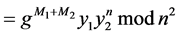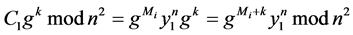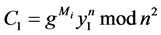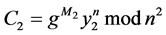 Step 5: The Encryption of a message M< n is given by C = gMrn mod n2