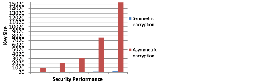 Figure 4. Security performance vs key size of symmetric and asymmetric encryption.
