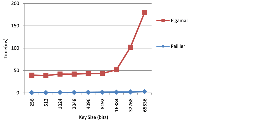 Table 4 shows the various key sizes of Paillier and Elgamal.
