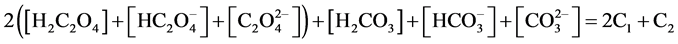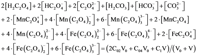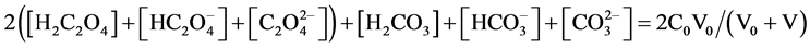 However, when V mL of C mol/L KMnO4 is added into V0 mL of C0 mol/L of acidified (H2SO4) solution of H2C2O4 (C0), the elemental balance for carbon C (in closed system)
