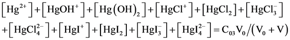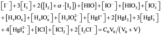 Example 14. V mL NaOH (C) + CO2 (C1) is added into V0 mL of I2 (C0) + KI (C01) + CO2 (C02) + W(o) mL of CCl4 [37] . In the liquid-liquid extraction system thus obtained we have: P = 20 (H2O, H+, OH−, e−, I−,