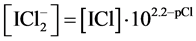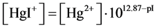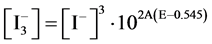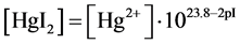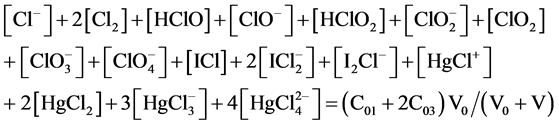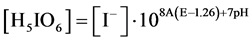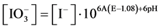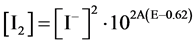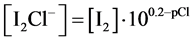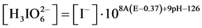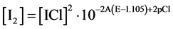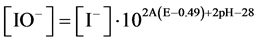 where: A = 16.92 (at 298 K), pCl = −log[Cl−], pI = −log[I−]; the solubility s of I2 is the 37th equilibrium constant. Within F range where I2 is the equilibrium solid phase, we have 46 = 8 + 37 + 1; if not (i.e. a = 0 in Equations (17) and (18)), we have 45 = 8 + 36 + 1.