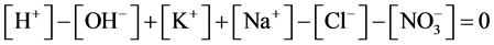 expressing the principle of electroneutrality of the solution [21] , of frequent use is the proton balance [28] , resulting from interpretation of stoichiometric reaction notations in acid-base systems. However, the proton balance is a linear combination of charge and concentration balances [29] .