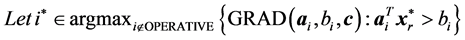 to order constraints from highest to lowest value of RAD as a geometric heuristic for determining the constraints most likely to be binding at optimality. Moreover, at each iteration in [6] we add violated constraints in order of decreasing RAD until the added constraints contain non-zero coefficients for all variables. In similar fashion for COST GRAD of [17] , we use the constraint selection metric