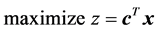 where x and c are the n-dimensional column vectors of variables and objective coefficients, respectively, and z represents the objective function. The matrix A is an m × n matrix
