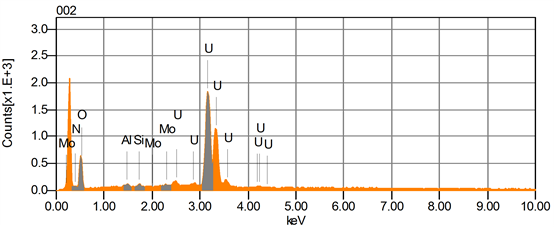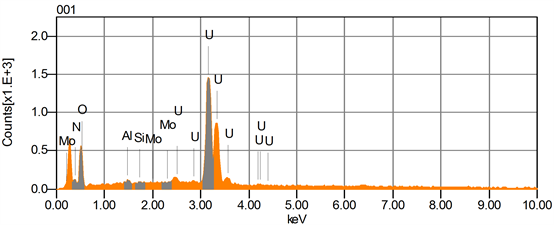 Table 4. Microanalysis results at the surface of UMo particles, corresponding to Figure 2 and Figure 3.