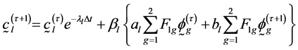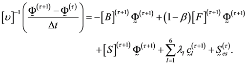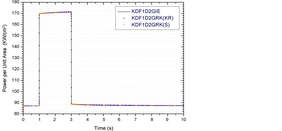 In order to solve time dependent equation system, the analytical integration procedure [8] has been adopted for the precursor concentration equation, Equation (4), whereas the Methods Implicit Euler and Rosenbrock Generalized Runge-Kutta with automated time step size control [9] [10] [11] are considered for the neutron flux in Equation (3).