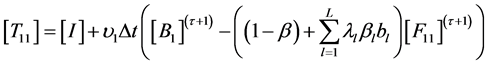 The spatial discretization scheme adopted is based on classical formulation of finite differences, implemented in the box schema [6] [7] . Therefore, Equations (1) and (2) can be rewritten in the following matrix form: