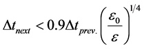 During the implementation of the automatic time step size control two solutions of Equation (18) are used: a third order solution,