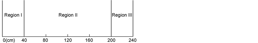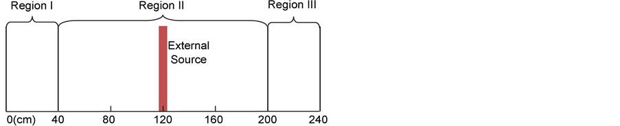 To test the presented methods, the ANL-BSS-6 benchmark [13] [14] was considered a problem of one-dimensional slab infinite for transients in spatial kinetics, with three regions, and the regions I and III are 40 cm long, both with the same nuclear parameters and a central region, 160 cm long, as shown in Figure 1. Nuclear and kinetic parameters are listed in the Table 1 and Table 2.