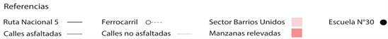 Figure 6. Map of the Barrios Unidos, Nueve de Julio, Argentina (Source: Map produced by Teo Vexina Wilkinson, CODEV, 2017).